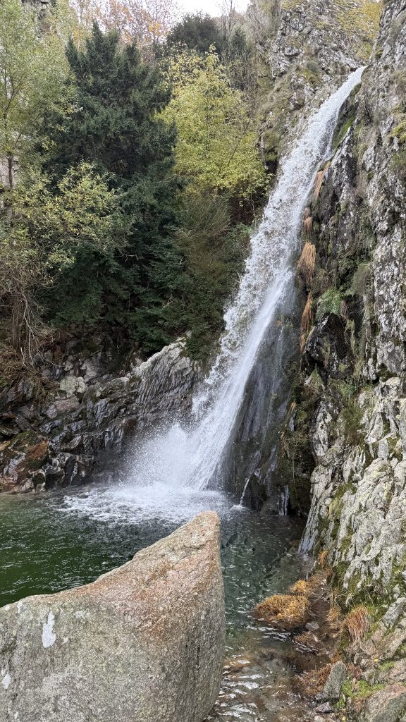 Seguimos viagem com a vista fantástica do Vale Glaciar do Rio Zêzere como pano de fundo até chegarmos ao Poço do Inferno. A cascata, com cerca de 10 metros de altura, é imponente e linda de se ver. Decidimos fazer o trilho, Da Rota do Poço do Inferno, mas só passados alguns metros percebemos que estávamos a fazê-lo no sentido contrário ao recomendado (não tínhamos encontrado o início!).